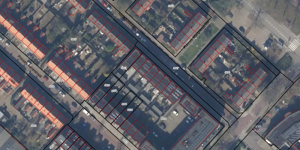 Het perceel waarop Nassaustraat 10 staat heeft een oppervlakte van 3202 m². Dit is een zeer groot perceel. De perceeloppervlakte wordt geregistreerd door het Kadaster. Gedetailleerde informatie over de maten van dit perceel kunt u vinden in het rapport Kadastrale kaart met maatvoering van Nassaustraat 10.