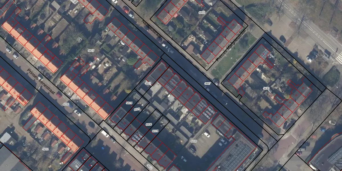Het perceel waarop Nassaustraat 12 staat heeft een oppervlakte van 3202 m². Dit is een zeer groot perceel. De perceeloppervlakte wordt geregistreerd door het Kadaster. Gedetailleerde informatie over de maten van dit perceel kunt u vinden in het rapport Kadastrale kaart met maatvoering van Nassaustraat 12.
