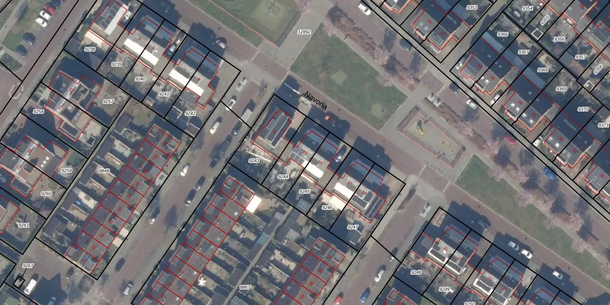 Het perceel waarop Navona 13 staat heeft een oppervlakte van 243 m². Dit is een middelgroot perceel. De perceeloppervlakte wordt geregistreerd door het Kadaster. Gedetailleerde informatie over de maten van dit perceel kunt u vinden in het rapport Kadastrale kaart met maatvoering van Navona 13.