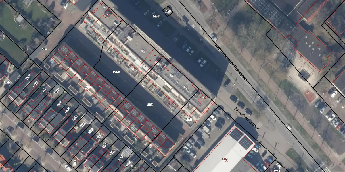 Het perceel waarop Nijverheidsstraat 15-A staat heeft een oppervlakte van 1497 m². Dit is een zeer groot perceel. De perceeloppervlakte wordt geregistreerd door het Kadaster. Gedetailleerde informatie over de maten van dit perceel kunt u vinden in het rapport Kadastrale kaart met maatvoering van Nijverheidsstraat 15-A.