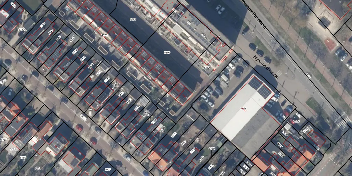 Het perceel waarop Nijverheidsstraat 21-G staat heeft een oppervlakte van 801 m². Dit is een groot perceel. De perceeloppervlakte wordt geregistreerd door het Kadaster. Gedetailleerde informatie over de maten van dit perceel kunt u vinden in het rapport Kadastrale kaart met maatvoering van Nijverheidsstraat 21-G.
