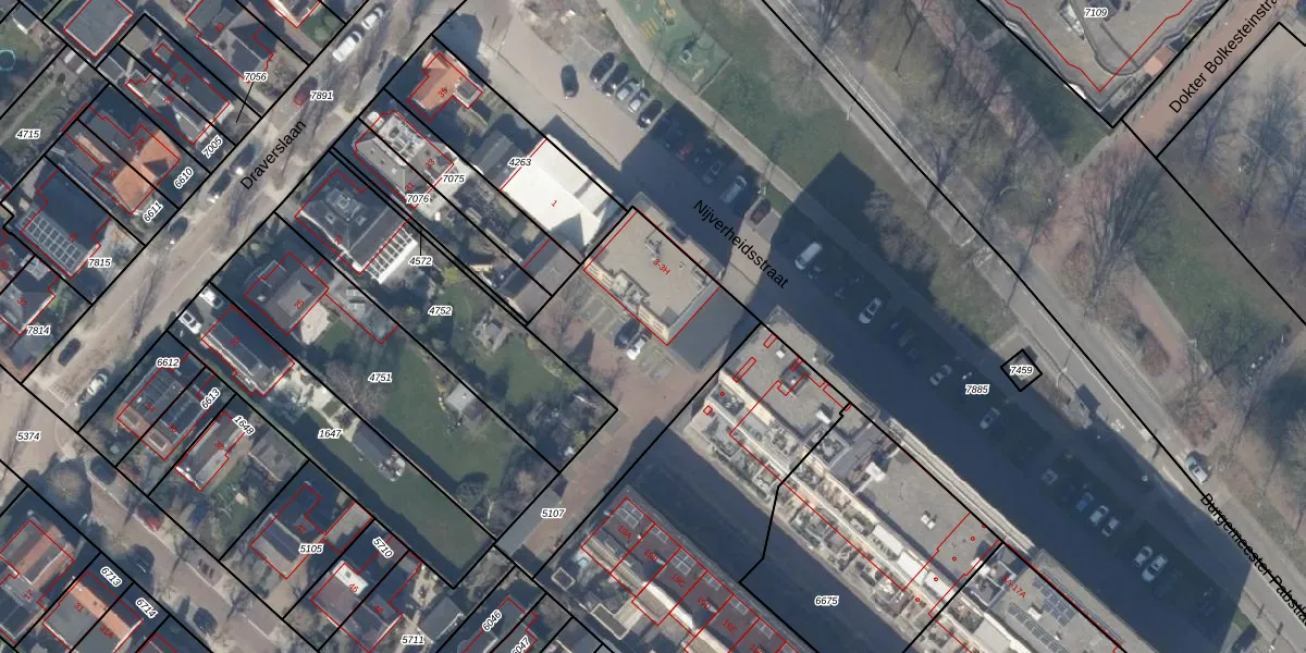 Het perceel waarop Nijverheidsstraat 3-G staat heeft een oppervlakte van 866 m². Dit is een groot perceel. De perceeloppervlakte wordt geregistreerd door het Kadaster. Gedetailleerde informatie over de maten van dit perceel kunt u vinden in het rapport Kadastrale kaart met maatvoering van Nijverheidsstraat 3-G.