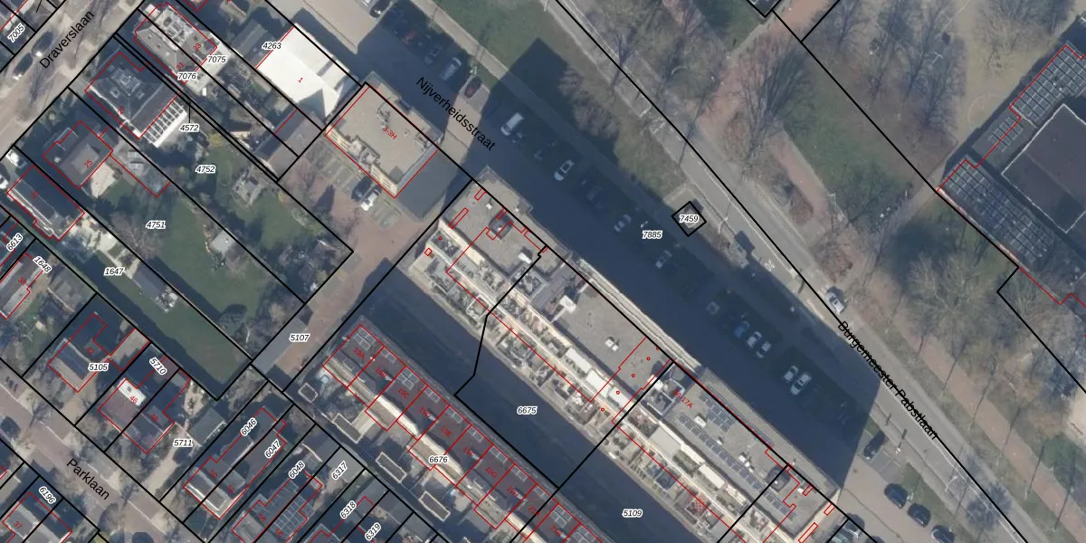 Het perceel waarop Nijverheidsstraat 7-F staat heeft een oppervlakte van 938 m². Dit is een groot perceel. De perceeloppervlakte wordt geregistreerd door het Kadaster. Gedetailleerde informatie over de maten van dit perceel kunt u vinden in het rapport Kadastrale kaart met maatvoering van Nijverheidsstraat 7-F.