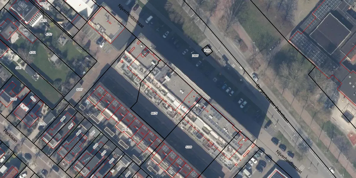 Het perceel waarop Nijverheidsstraat 9-K staat heeft een oppervlakte van 938 m². Dit is een groot perceel. De perceeloppervlakte wordt geregistreerd door het Kadaster. Gedetailleerde informatie over de maten van dit perceel kunt u vinden in het rapport Kadastrale kaart met maatvoering van Nijverheidsstraat 9-K.