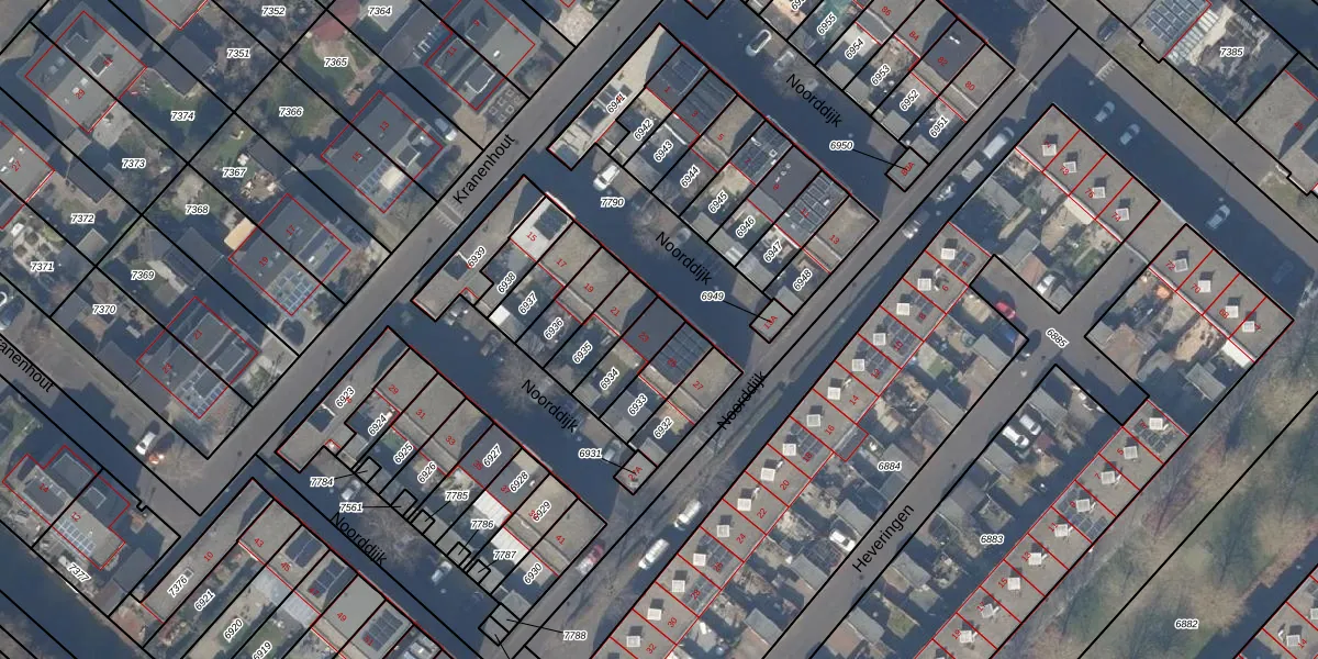 Noorddijk 23 is gelegen op kadastraal perceel HLM03AD6934. Deze kadastrale aanduiding is uniek en wordt gebruikt door het Kadaster om eigendomsrechten en andere zakelijke rechten vast te leggen. Het perceel maakt onderdeel uit van de kadastrale gemeente Haarlemmermeer.