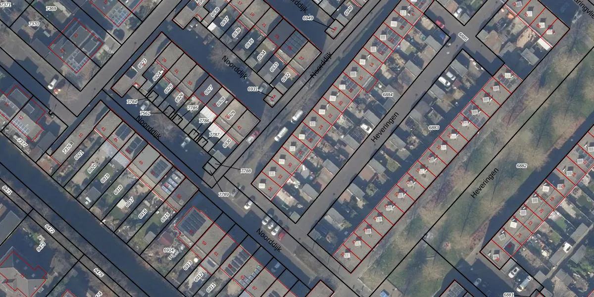 Het perceel waarop Noorddijk 28 staat heeft een oppervlakte van 2230 m². Dit is een zeer groot perceel. De perceeloppervlakte wordt geregistreerd door het Kadaster. Gedetailleerde informatie over de maten van dit perceel kunt u vinden in het rapport Kadastrale kaart met maatvoering van Noorddijk 28.