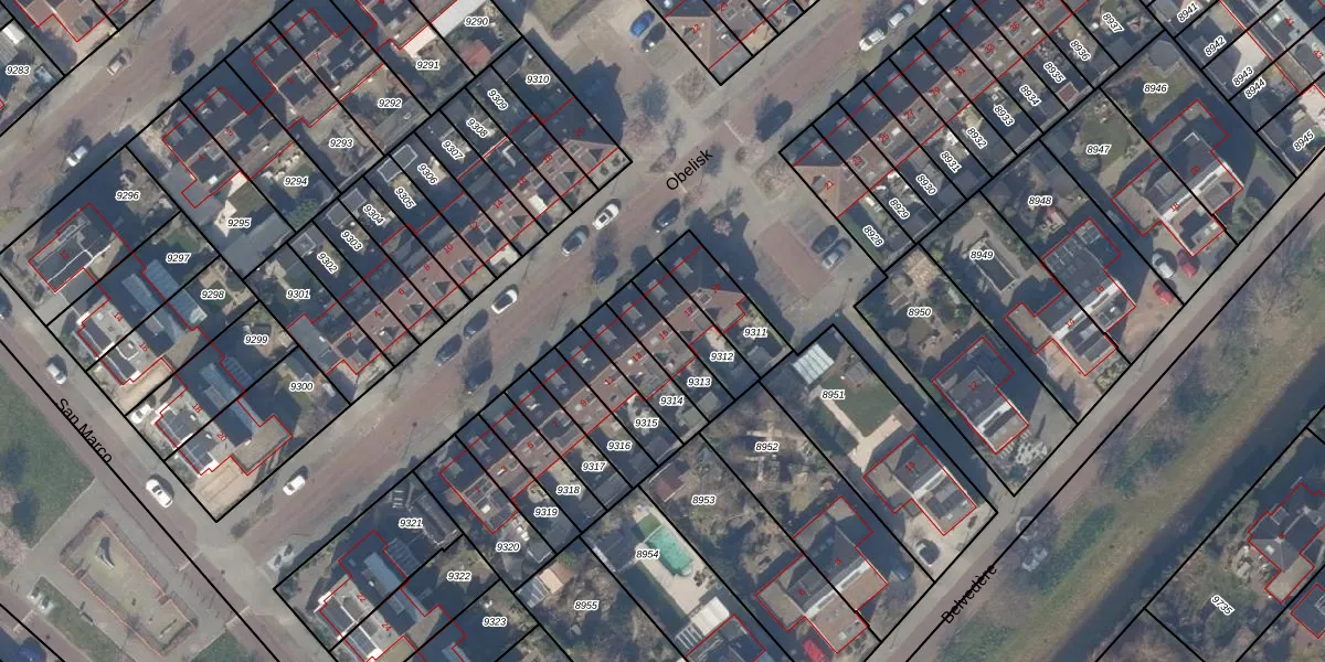 Het perceel waarop Obelisk 15 staat heeft een oppervlakte van 122 m². Dit is een middelgroot perceel. De perceeloppervlakte wordt geregistreerd door het Kadaster. Gedetailleerde informatie over de maten van dit perceel kunt u vinden in het rapport Kadastrale kaart met maatvoering van Obelisk 15.