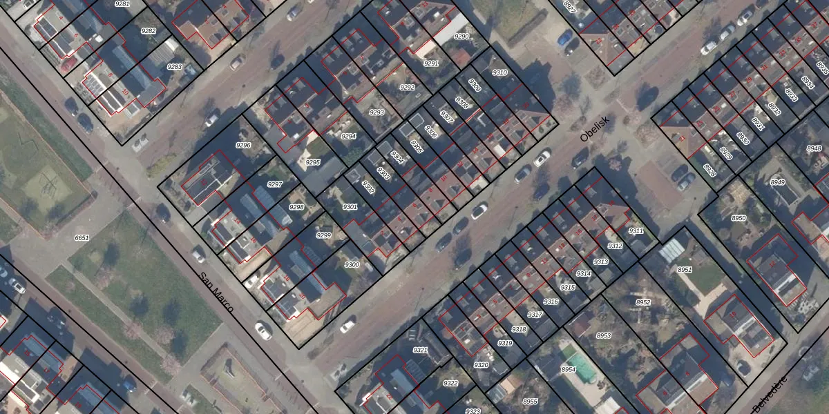 Het perceel waarop Obelisk 6 staat heeft een oppervlakte van 128 m². Dit is een middelgroot perceel. De perceeloppervlakte wordt geregistreerd door het Kadaster. Gedetailleerde informatie over de maten van dit perceel kunt u vinden in het rapport Kadastrale kaart met maatvoering van Obelisk 6.