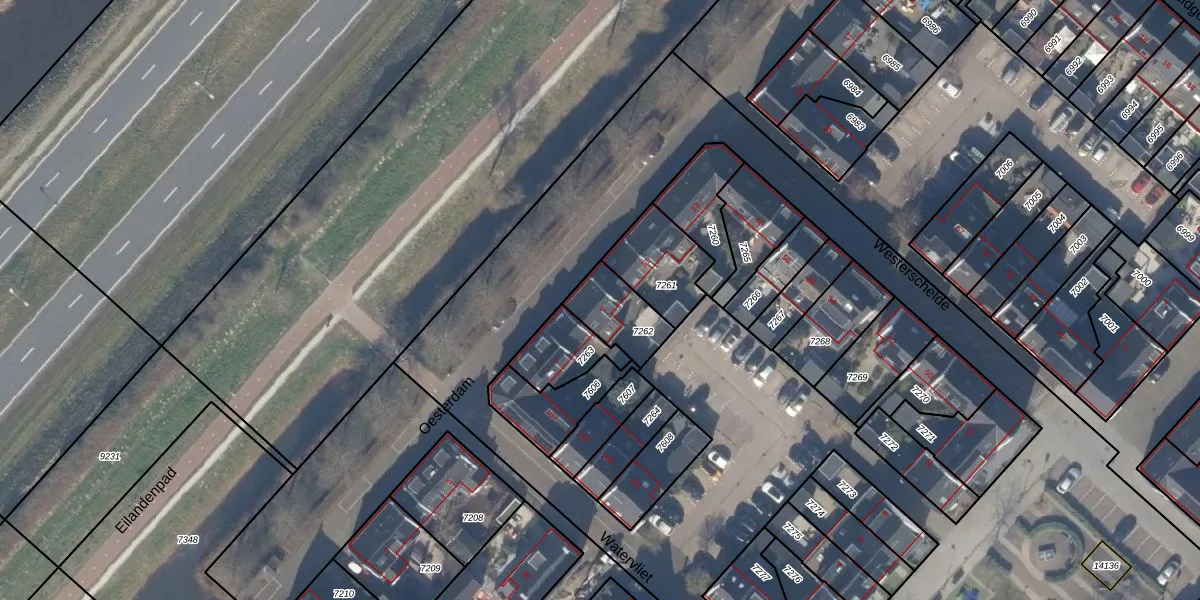 Het perceel waarop Oesterdam 9 staat heeft een oppervlakte van 159 m². Dit is een middelgroot perceel. De perceeloppervlakte wordt geregistreerd door het Kadaster. Gedetailleerde informatie over de maten van dit perceel kunt u vinden in het rapport Kadastrale kaart met maatvoering van Oesterdam 9.