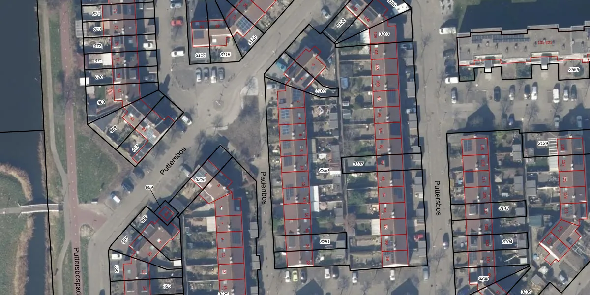 Het perceel waarop Padenbos 8 staat heeft een oppervlakte van 3421 m². Dit is een zeer groot perceel. De perceeloppervlakte wordt geregistreerd door het Kadaster. Gedetailleerde informatie over de maten van dit perceel kunt u vinden in het rapport Kadastrale kaart met maatvoering van Padenbos 8.
