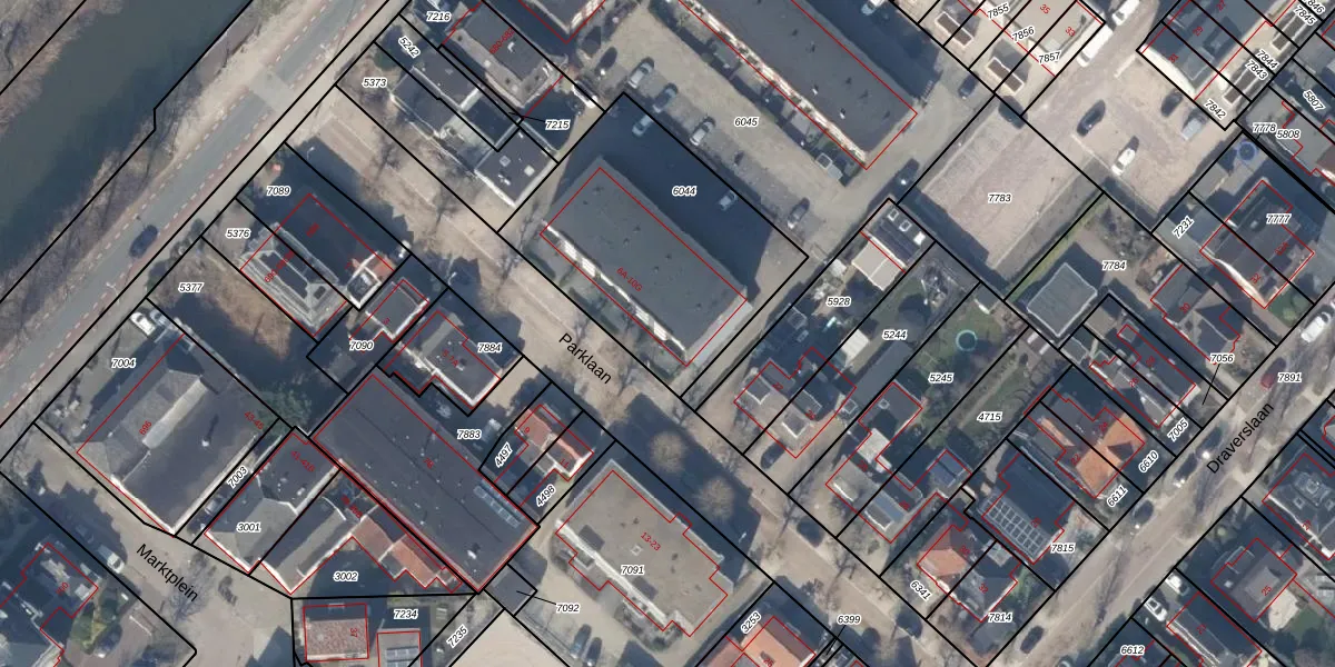 Het perceel waarop Parklaan 6-B staat heeft een oppervlakte van 1039 m². Dit is een zeer groot perceel. De perceeloppervlakte wordt geregistreerd door het Kadaster. Gedetailleerde informatie over de maten van dit perceel kunt u vinden in het rapport Kadastrale kaart met maatvoering van Parklaan 6-B.