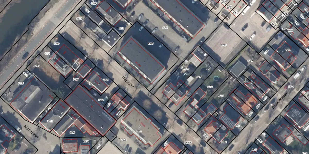 Het perceel waarop Parklaan 8-A staat heeft een oppervlakte van 1039 m². Dit is een zeer groot perceel. De perceeloppervlakte wordt geregistreerd door het Kadaster. Gedetailleerde informatie over de maten van dit perceel kunt u vinden in het rapport Kadastrale kaart met maatvoering van Parklaan 8-A.