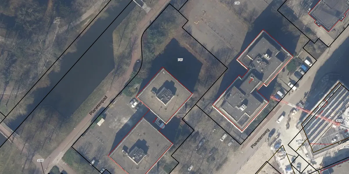 Het perceel waarop Planetenweg 87 staat heeft een oppervlakte van 4269 m². Dit is een zeer groot perceel. De perceeloppervlakte wordt geregistreerd door het Kadaster. Gedetailleerde informatie over de maten van dit perceel kunt u vinden in het rapport Kadastrale kaart met maatvoering van Planetenweg 87.