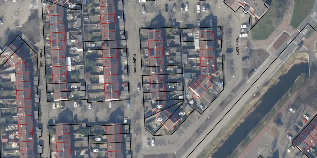 Het perceel waarop Puttersbos 105 staat heeft een oppervlakte van 2130 m². Dit is een zeer groot perceel. De perceeloppervlakte wordt geregistreerd door het Kadaster. Gedetailleerde informatie over de maten van dit perceel kunt u vinden in het rapport Kadastrale kaart met maatvoering van Puttersbos 105.