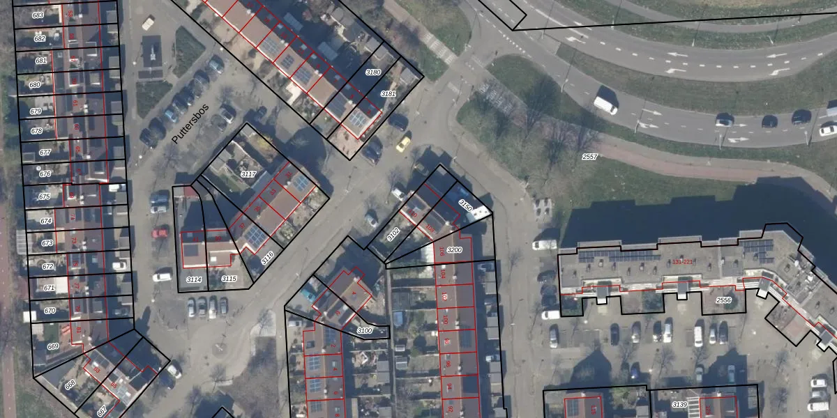 Puttersbos 110 is gelegen op kadastraal perceel HLM03P3102. Deze kadastrale aanduiding is uniek en wordt gebruikt door het Kadaster om eigendomsrechten en andere zakelijke rechten vast te leggen. Het perceel maakt onderdeel uit van de kadastrale gemeente Haarlemmermeer.