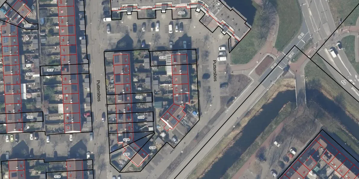 Puttersbos 123 is gelegen op kadastraal perceel HLM03P3239. Deze kadastrale aanduiding is uniek en wordt gebruikt door het Kadaster om eigendomsrechten en andere zakelijke rechten vast te leggen. Het perceel maakt onderdeel uit van de kadastrale gemeente Haarlemmermeer.