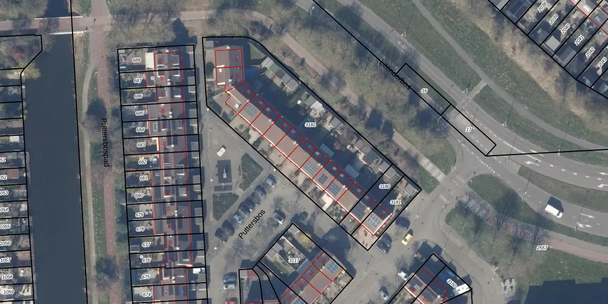 Puttersbos 15 is gelegen op kadastraal perceel HLM03P3182. Deze kadastrale aanduiding is uniek en wordt gebruikt door het Kadaster om eigendomsrechten en andere zakelijke rechten vast te leggen. Het perceel maakt onderdeel uit van de kadastrale gemeente Haarlemmermeer.