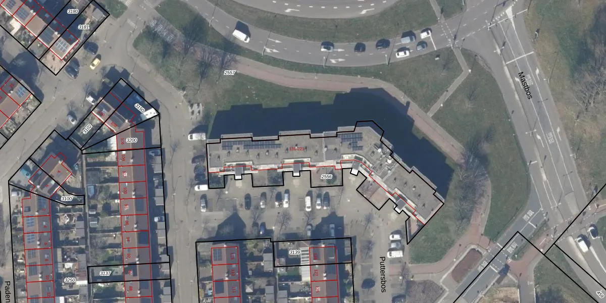 Puttersbos 187 is gelegen op kadastraal perceel HLM03P2556. Deze kadastrale aanduiding is uniek en wordt gebruikt door het Kadaster om eigendomsrechten en andere zakelijke rechten vast te leggen. Het perceel maakt onderdeel uit van de kadastrale gemeente Haarlemmermeer.