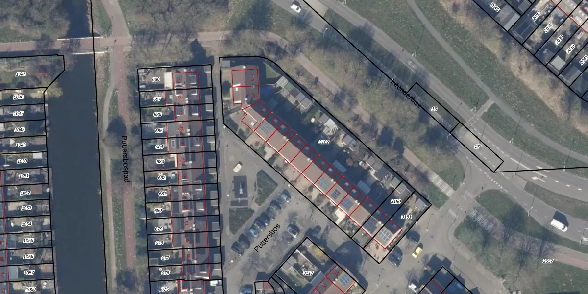 Puttersbos 19 is gelegen op kadastraal perceel HLM03P3182. Deze kadastrale aanduiding is uniek en wordt gebruikt door het Kadaster om eigendomsrechten en andere zakelijke rechten vast te leggen. Het perceel maakt onderdeel uit van de kadastrale gemeente Haarlemmermeer.
