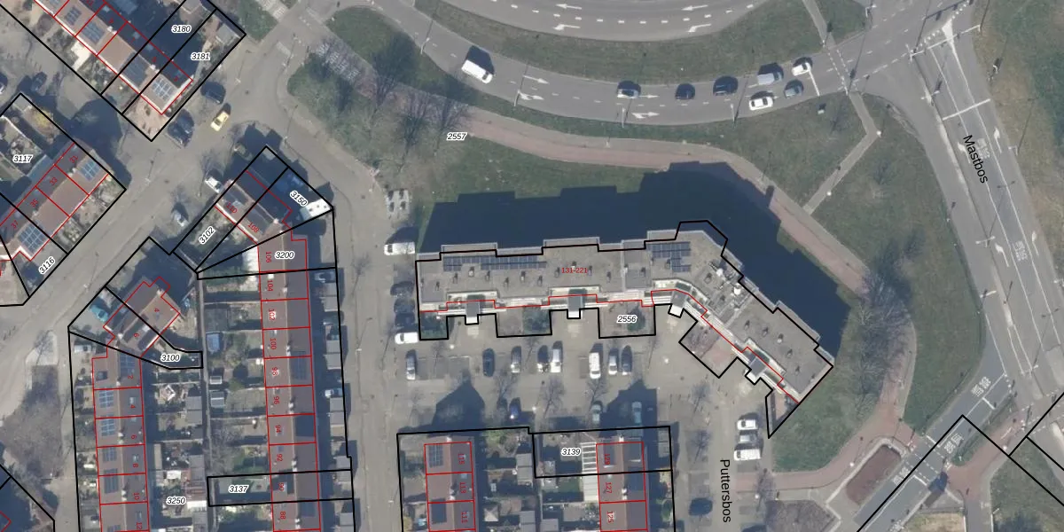 Puttersbos 199 is gelegen op kadastraal perceel HLM03P2556. Deze kadastrale aanduiding is uniek en wordt gebruikt door het Kadaster om eigendomsrechten en andere zakelijke rechten vast te leggen. Het perceel maakt onderdeel uit van de kadastrale gemeente Haarlemmermeer.