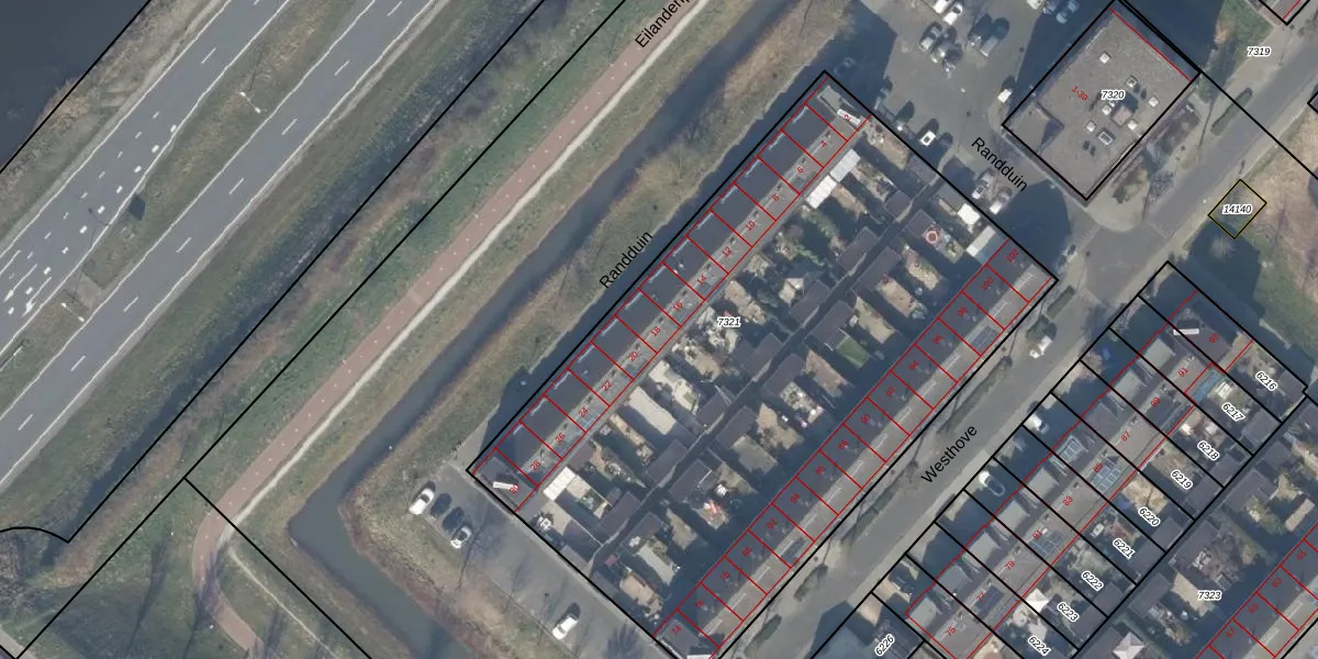 Het perceel waarop Randduin 18 staat heeft een oppervlakte van 3877 m². Dit is een zeer groot perceel. De perceeloppervlakte wordt geregistreerd door het Kadaster. Gedetailleerde informatie over de maten van dit perceel kunt u vinden in het rapport Kadastrale kaart met maatvoering van Randduin 18.