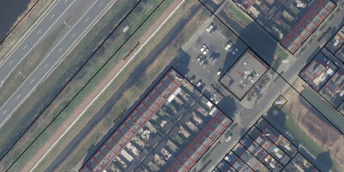Het perceel waarop Randduin 4 staat heeft een oppervlakte van 3877 m². Dit is een zeer groot perceel. De perceeloppervlakte wordt geregistreerd door het Kadaster. Gedetailleerde informatie over de maten van dit perceel kunt u vinden in het rapport Kadastrale kaart met maatvoering van Randduin 4.