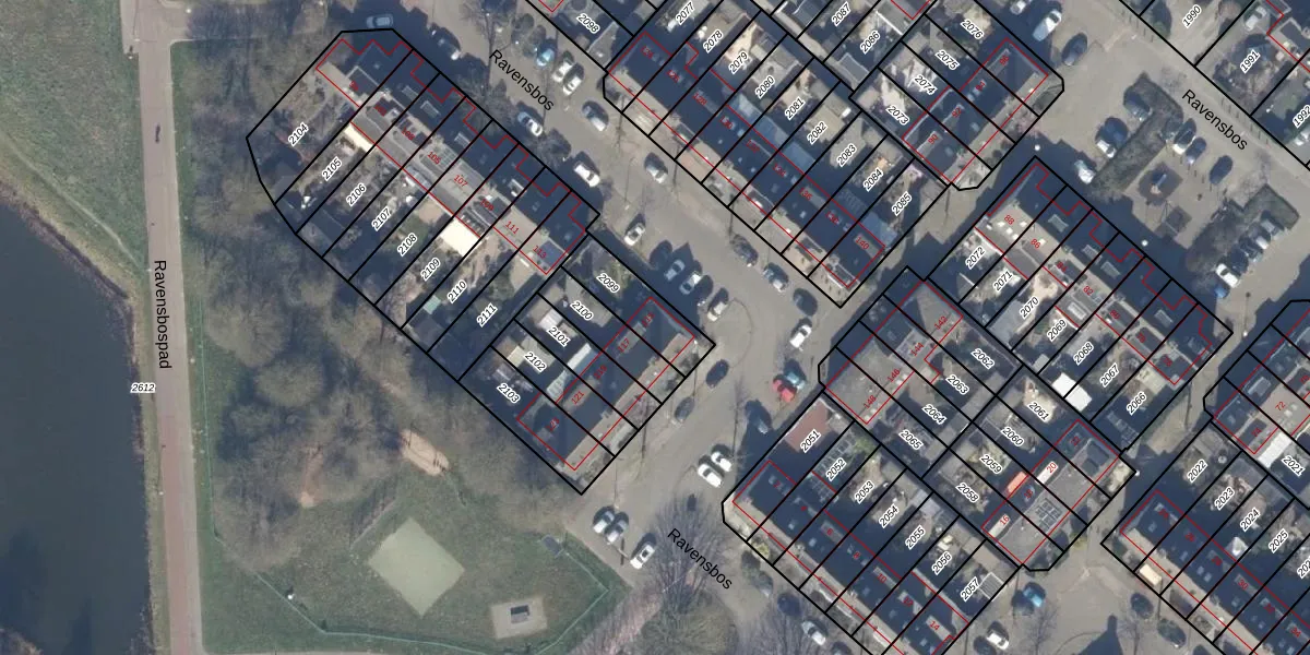 Het perceel waarop Ravensbos 115 staat heeft een oppervlakte van 173 m². Dit is een middelgroot perceel. De perceeloppervlakte wordt geregistreerd door het Kadaster. Gedetailleerde informatie over de maten van dit perceel kunt u vinden in het rapport Kadastrale kaart met maatvoering van Ravensbos 115.