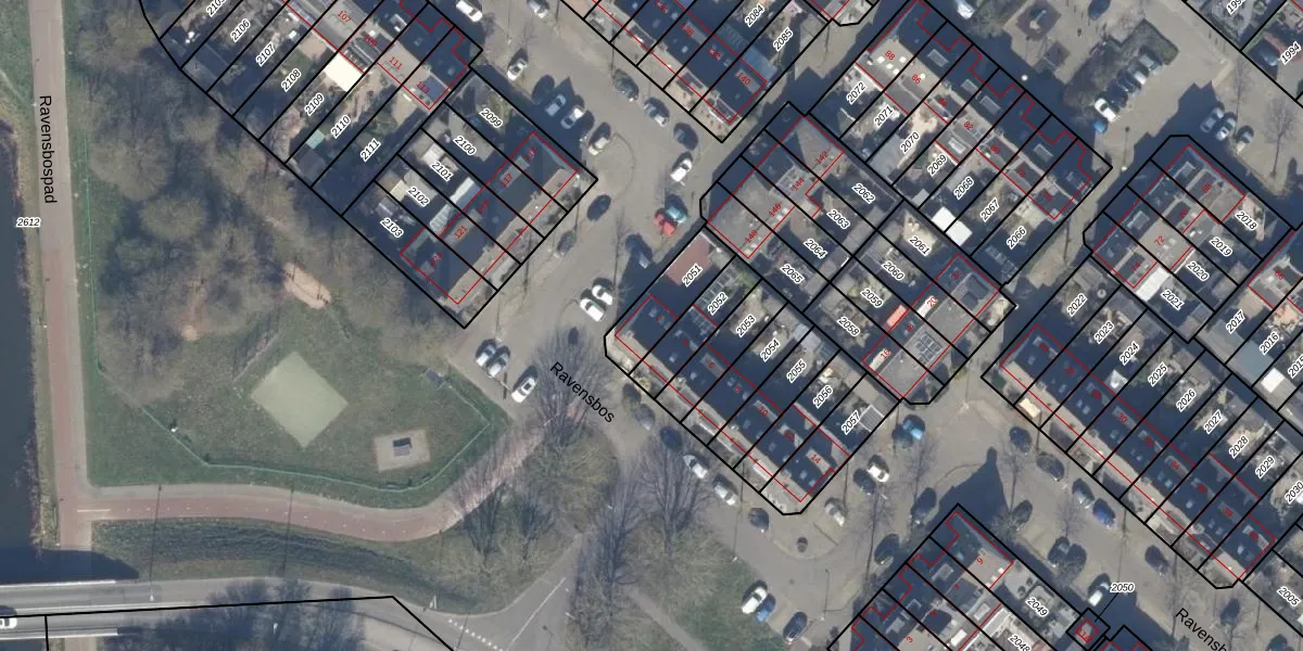 Het perceel waarop Ravensbos 2 staat heeft een oppervlakte van 165 m². Dit is een middelgroot perceel. De perceeloppervlakte wordt geregistreerd door het Kadaster. Gedetailleerde informatie over de maten van dit perceel kunt u vinden in het rapport Kadastrale kaart met maatvoering van Ravensbos 2.