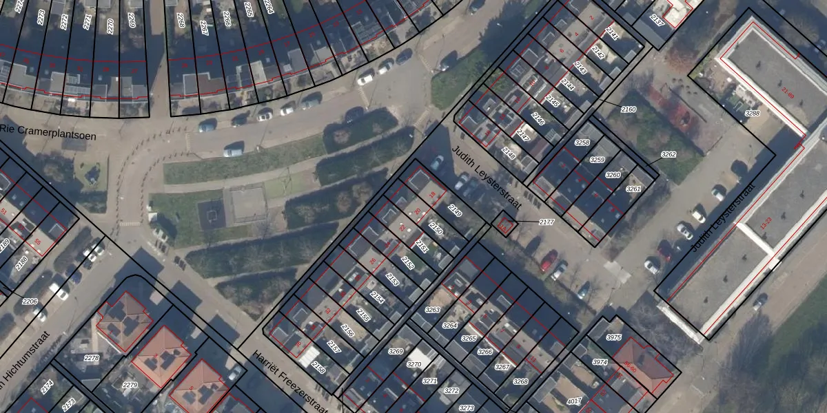 Rie Cramerplantsoen 20 is gelegen op kadastraal perceel HLM03Q2150. Deze kadastrale aanduiding is uniek en wordt gebruikt door het Kadaster om eigendomsrechten en andere zakelijke rechten vast te leggen. Het perceel maakt onderdeel uit van de kadastrale gemeente Haarlemmermeer.