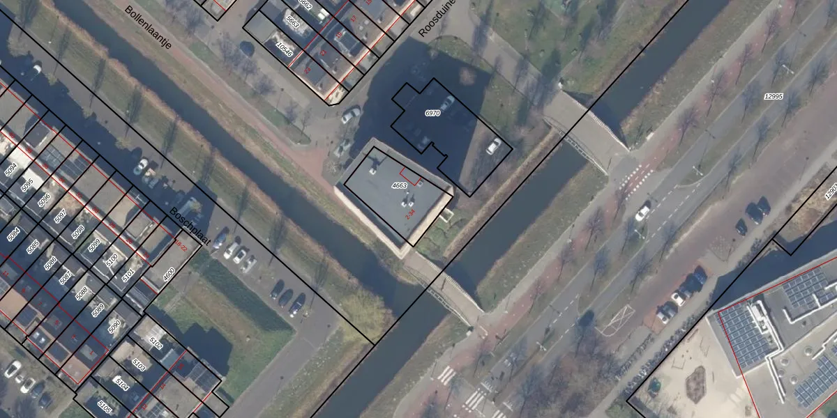 Het perceel waarop Roosduinen 12 staat heeft een oppervlakte van 297 m². Dit is een middelgroot perceel. De perceeloppervlakte wordt geregistreerd door het Kadaster. Gedetailleerde informatie over de maten van dit perceel kunt u vinden in het rapport Kadastrale kaart met maatvoering van Roosduinen 12.
