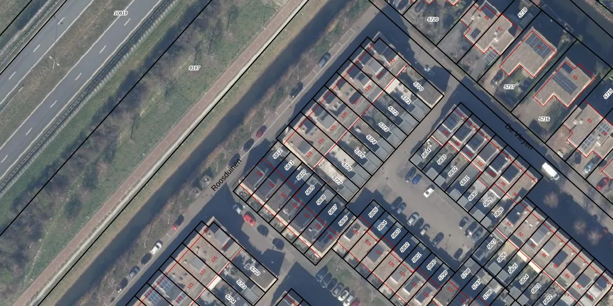 Het perceel waarop Roosduinen 129 staat heeft een oppervlakte van 189 m². Dit is een middelgroot perceel. De perceeloppervlakte wordt geregistreerd door het Kadaster. Gedetailleerde informatie over de maten van dit perceel kunt u vinden in het rapport Kadastrale kaart met maatvoering van Roosduinen 129.
