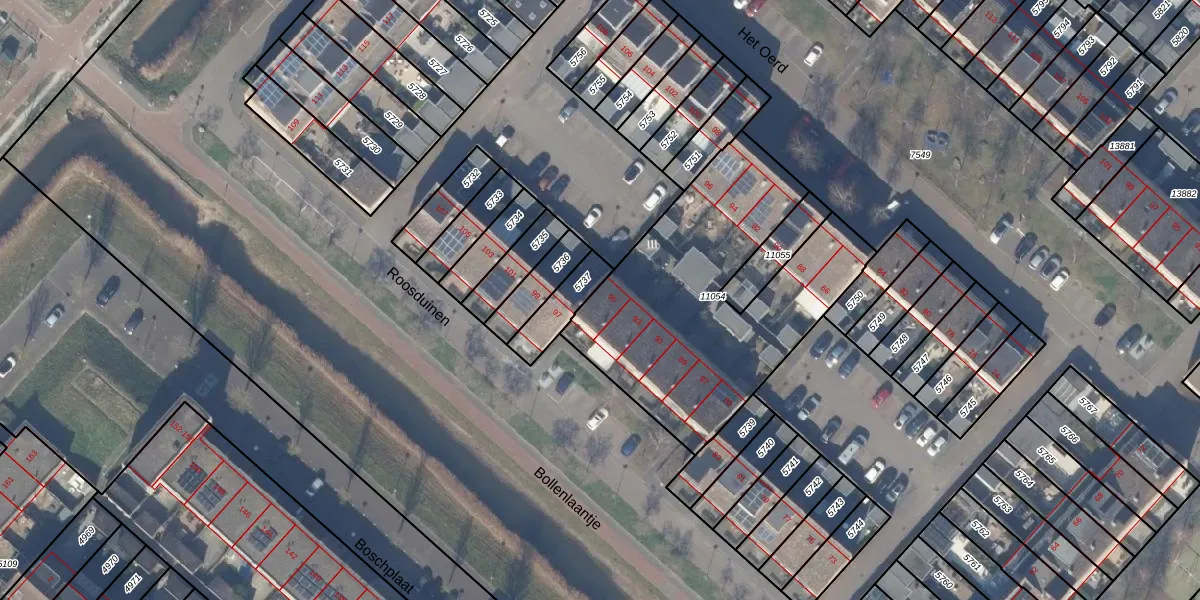 Het perceel waarop Roosduinen 95 staat heeft een oppervlakte van 1290 m². Dit is een zeer groot perceel. De perceeloppervlakte wordt geregistreerd door het Kadaster. Gedetailleerde informatie over de maten van dit perceel kunt u vinden in het rapport Kadastrale kaart met maatvoering van Roosduinen 95.