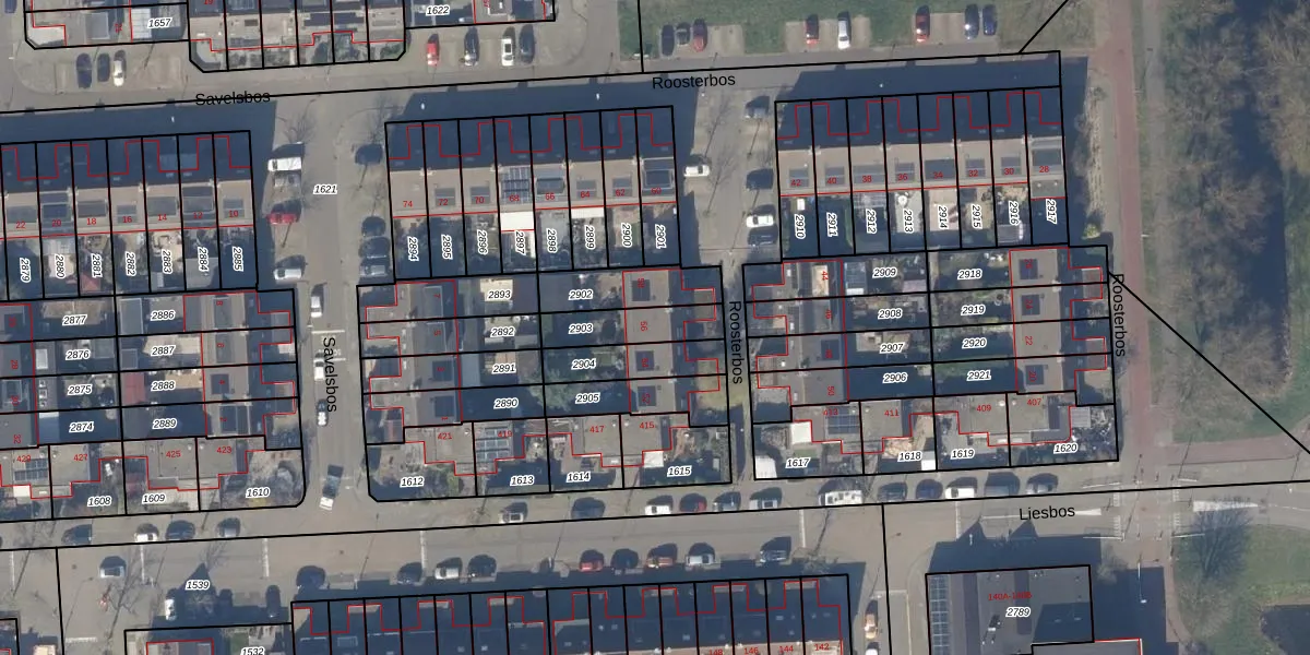 Het perceel waarop Roosterbos 56 staat heeft een oppervlakte van 151 m². Dit is een middelgroot perceel. De perceeloppervlakte wordt geregistreerd door het Kadaster. Gedetailleerde informatie over de maten van dit perceel kunt u vinden in het rapport Kadastrale kaart met maatvoering van Roosterbos 56.