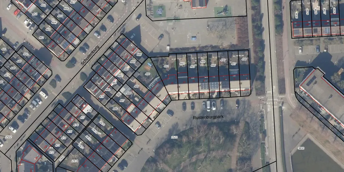 Het perceel waarop Rustenburgpark 15 staat heeft een oppervlakte van 255 m². Dit is een middelgroot perceel. De perceeloppervlakte wordt geregistreerd door het Kadaster. Gedetailleerde informatie over de maten van dit perceel kunt u vinden in het rapport Kadastrale kaart met maatvoering van Rustenburgpark 15.