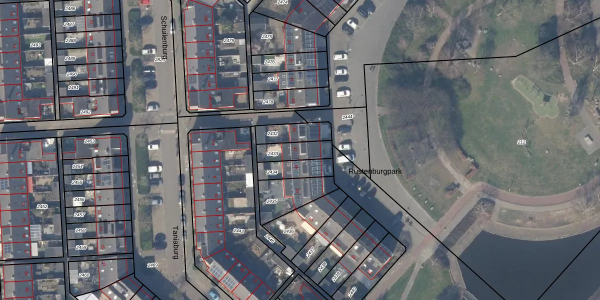 Het perceel waarop Rustenburgpark 47 staat heeft een oppervlakte van 153 m². Dit is een middelgroot perceel. De perceeloppervlakte wordt geregistreerd door het Kadaster. Gedetailleerde informatie over de maten van dit perceel kunt u vinden in het rapport Kadastrale kaart met maatvoering van Rustenburgpark 47.