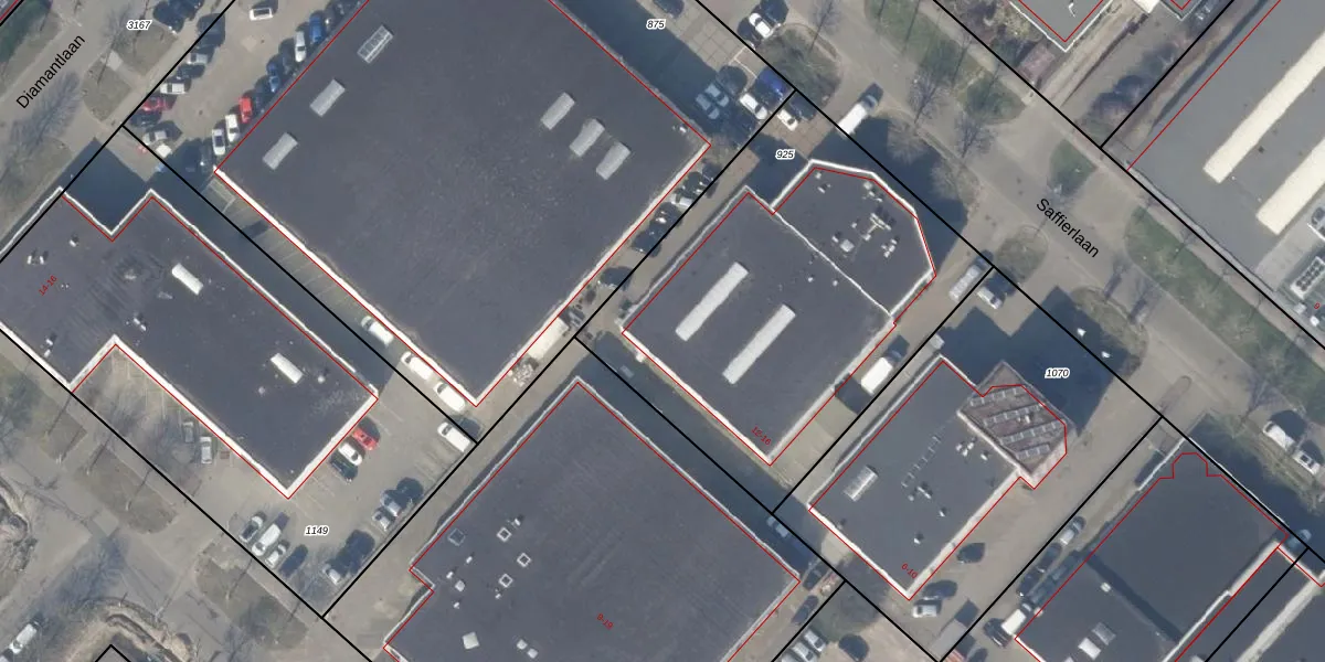Het perceel waarop Saffierlaan 16 staat heeft een oppervlakte van 2000 m². Dit is een zeer groot perceel. De perceeloppervlakte wordt geregistreerd door het Kadaster. Gedetailleerde informatie over de maten van dit perceel kunt u vinden in het rapport Kadastrale kaart met maatvoering van Saffierlaan 16.
