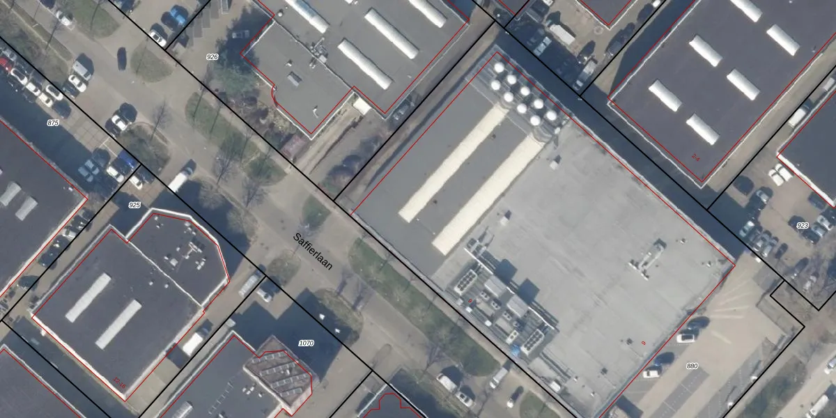 Het perceel waarop Saffierlaan 9 staat heeft een oppervlakte van 5970 m². Dit is een zeer groot perceel. De perceeloppervlakte wordt geregistreerd door het Kadaster. Gedetailleerde informatie over de maten van dit perceel kunt u vinden in het rapport Kadastrale kaart met maatvoering van Saffierlaan 9.