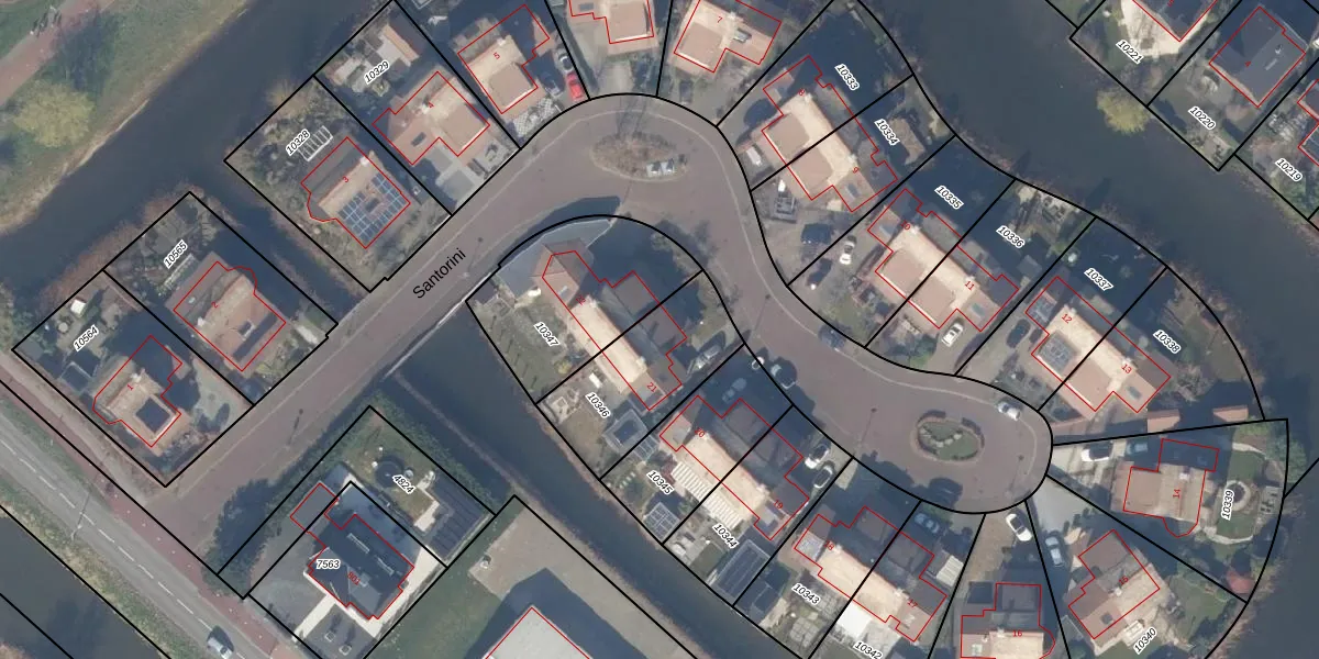 Het perceel waarop Santorini 21 staat heeft een oppervlakte van 440 m². Dit is een groot perceel. De perceeloppervlakte wordt geregistreerd door het Kadaster. Gedetailleerde informatie over de maten van dit perceel kunt u vinden in het rapport Kadastrale kaart met maatvoering van Santorini 21.