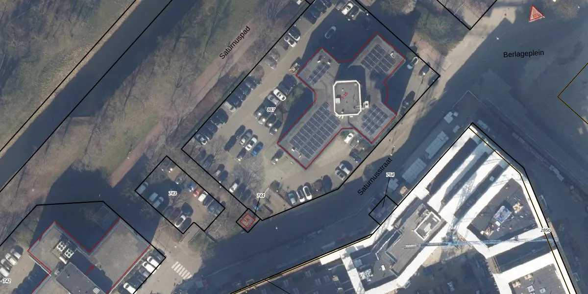 Het perceel waarop Saturnusstraat 1 staat heeft een oppervlakte van 3645 m². Dit is een zeer groot perceel. De perceeloppervlakte wordt geregistreerd door het Kadaster. Gedetailleerde informatie over de maten van dit perceel kunt u vinden in het rapport Kadastrale kaart met maatvoering van Saturnusstraat 1.