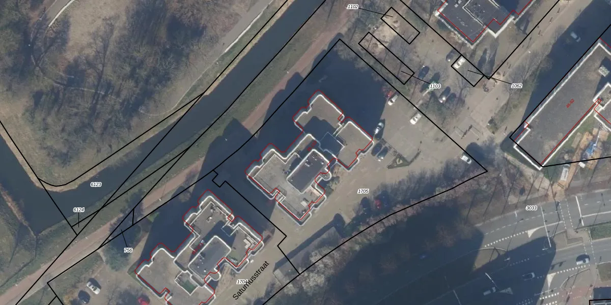 Het perceel waarop Saturnusstraat 103 staat heeft een oppervlakte van 3225 m². Dit is een zeer groot perceel. De perceeloppervlakte wordt geregistreerd door het Kadaster. Gedetailleerde informatie over de maten van dit perceel kunt u vinden in het rapport Kadastrale kaart met maatvoering van Saturnusstraat 103.