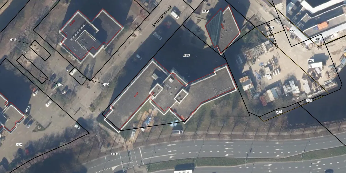 Het perceel waarop Saturnusstraat 54 staat heeft een oppervlakte van 2825 m². Dit is een zeer groot perceel. De perceeloppervlakte wordt geregistreerd door het Kadaster. Gedetailleerde informatie over de maten van dit perceel kunt u vinden in het rapport Kadastrale kaart met maatvoering van Saturnusstraat 54.