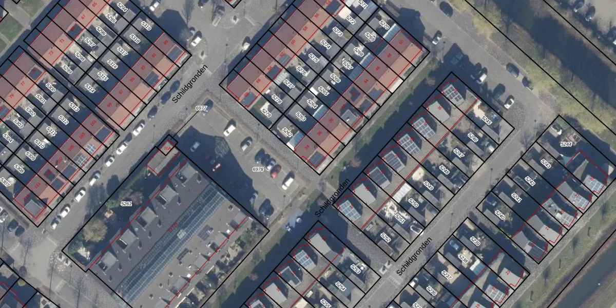 Schildgronden 34 is gelegen op kadastraal perceel HLM03AD5262. Deze kadastrale aanduiding is uniek en wordt gebruikt door het Kadaster om eigendomsrechten en andere zakelijke rechten vast te leggen. Het perceel maakt onderdeel uit van de kadastrale gemeente Haarlemmermeer.