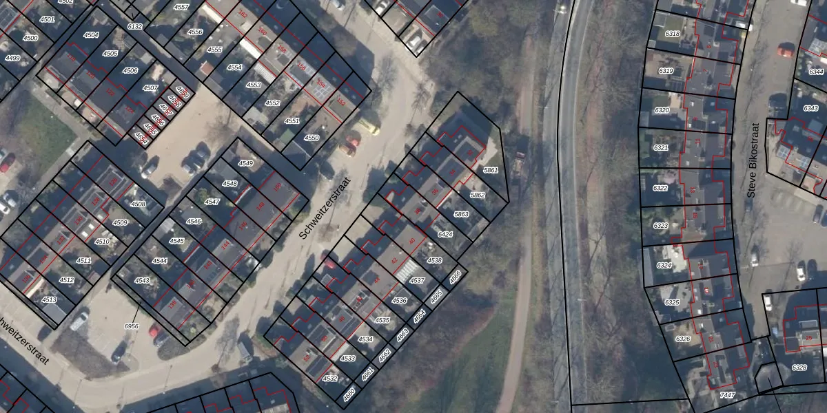 Het perceel waarop Schweitzerstraat 38 staat heeft een oppervlakte van 159 m². Dit is een middelgroot perceel. De perceeloppervlakte wordt geregistreerd door het Kadaster. Gedetailleerde informatie over de maten van dit perceel kunt u vinden in het rapport Kadastrale kaart met maatvoering van Schweitzerstraat 38.
