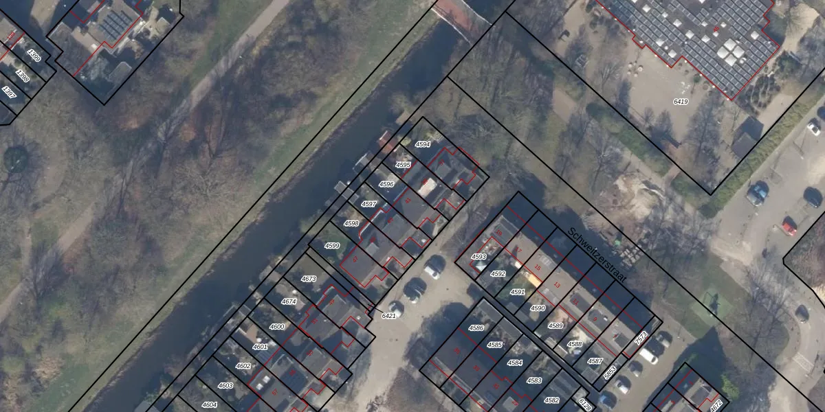 Schweitzerstraat 41 is gelegen op kadastraal perceel HLM03D4596. Deze kadastrale aanduiding is uniek en wordt gebruikt door het Kadaster om eigendomsrechten en andere zakelijke rechten vast te leggen. Het perceel maakt onderdeel uit van de kadastrale gemeente Haarlemmermeer.
