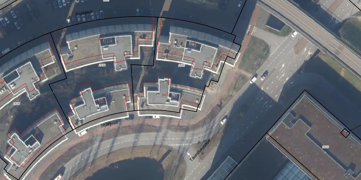 Het perceel waarop Scorpius 138 staat heeft een oppervlakte van 2065 m². Dit is een zeer groot perceel. De perceeloppervlakte wordt geregistreerd door het Kadaster. Gedetailleerde informatie over de maten van dit perceel kunt u vinden in het rapport Kadastrale kaart met maatvoering van Scorpius 138.