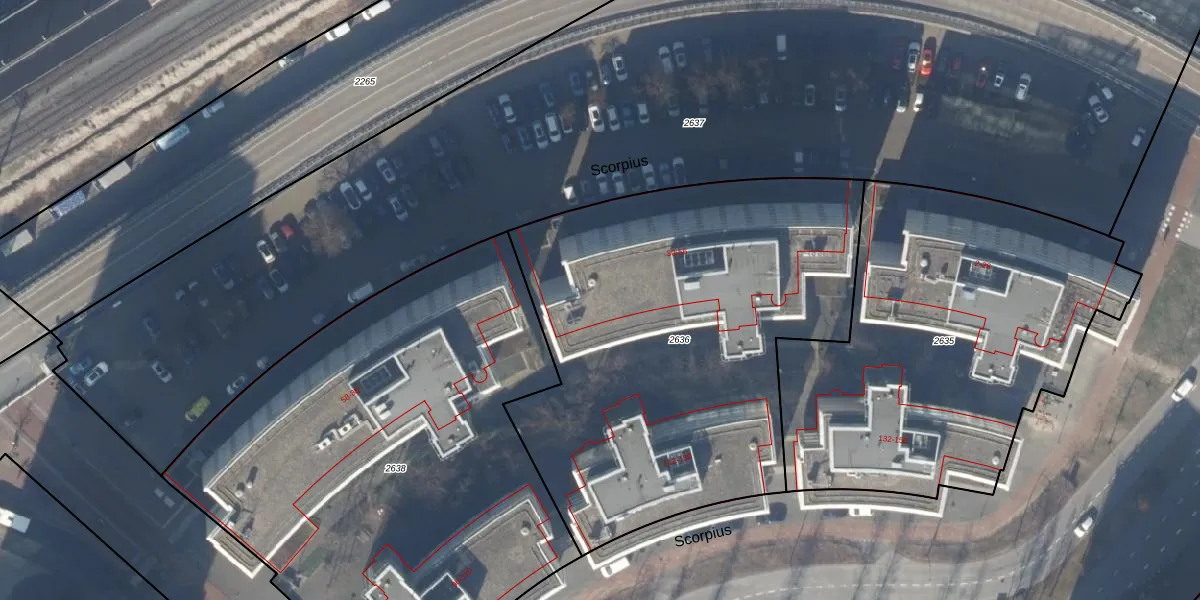 Het perceel waarop Scorpius 56 staat heeft een oppervlakte van 2580 m². Dit is een zeer groot perceel. De perceeloppervlakte wordt geregistreerd door het Kadaster. Gedetailleerde informatie over de maten van dit perceel kunt u vinden in het rapport Kadastrale kaart met maatvoering van Scorpius 56.