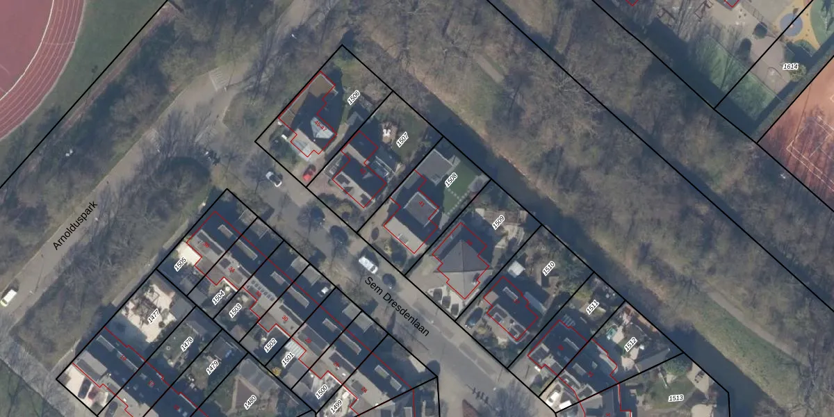 Het perceel waarop Sem Dresdenlaan 41 staat heeft een oppervlakte van 503 m². Dit is een groot perceel. De perceeloppervlakte wordt geregistreerd door het Kadaster. Gedetailleerde informatie over de maten van dit perceel kunt u vinden in het rapport Kadastrale kaart met maatvoering van Sem Dresdenlaan 41.