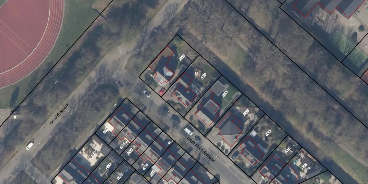 Het perceel waarop Sem Dresdenlaan 43 staat heeft een oppervlakte van 507 m². Dit is een groot perceel. De perceeloppervlakte wordt geregistreerd door het Kadaster. Gedetailleerde informatie over de maten van dit perceel kunt u vinden in het rapport Kadastrale kaart met maatvoering van Sem Dresdenlaan 43.