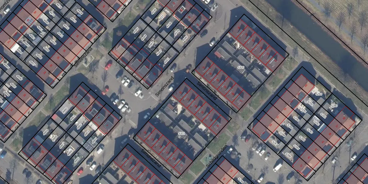 Het perceel waarop Simonszand 25 staat heeft een oppervlakte van 1443 m². Dit is een zeer groot perceel. De perceeloppervlakte wordt geregistreerd door het Kadaster. Gedetailleerde informatie over de maten van dit perceel kunt u vinden in het rapport Kadastrale kaart met maatvoering van Simonszand 25.