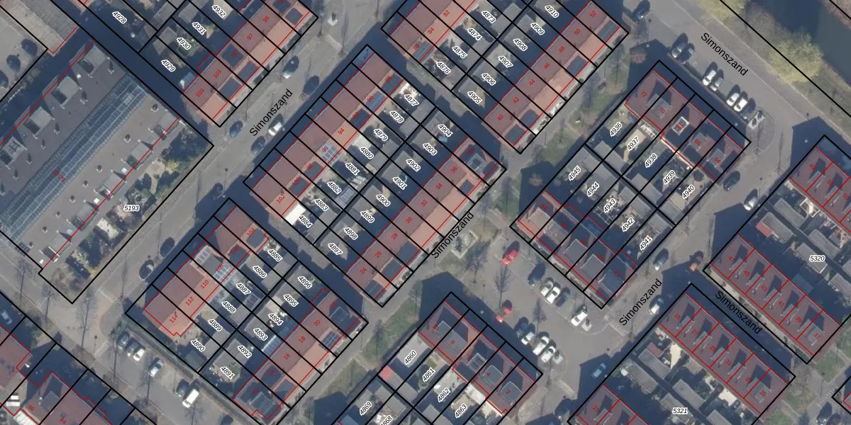 Het perceel waarop Simonszand 32 staat heeft een oppervlakte van 121 m². Dit is een middelgroot perceel. De perceeloppervlakte wordt geregistreerd door het Kadaster. Gedetailleerde informatie over de maten van dit perceel kunt u vinden in het rapport Kadastrale kaart met maatvoering van Simonszand 32.
